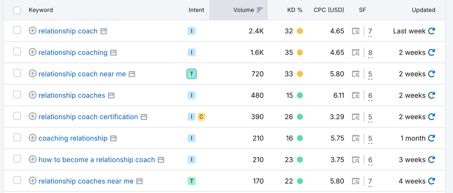 Here’s an example search for a relationship coach.