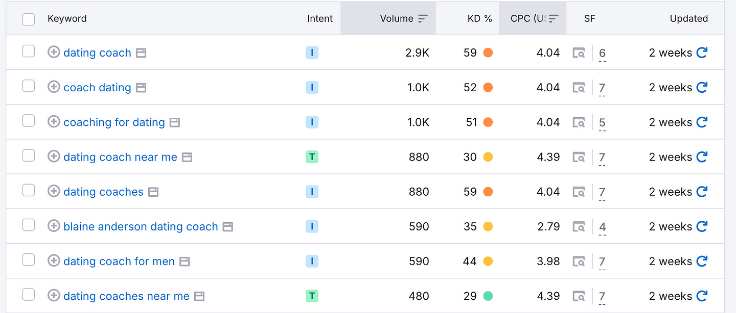 Let’s try with “dating coaching.”